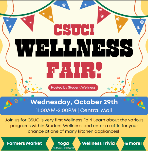 Students, faculty and staff are invited to participate in the campus' Wellness Fair on Wednesday, Oct. 29 at the Central Mall.